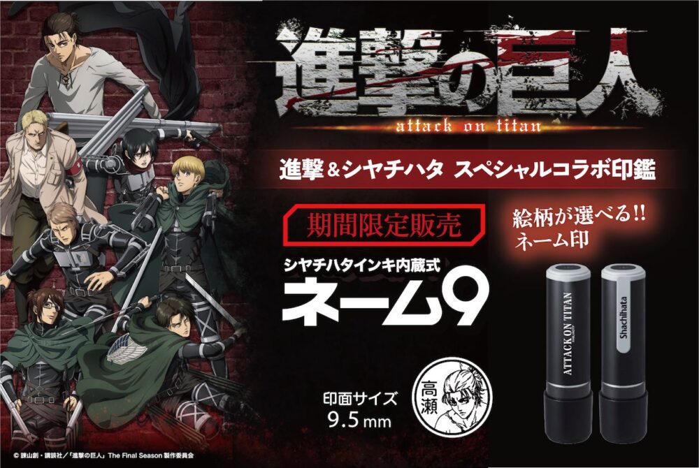 シヤチハタは、シヤチハタオフィシャルショップにて、進撃の巨人×シヤチハタがコラボした「ネーム 9」を2022年8月26日(金)から9月25日(日)の期間で予約販売する。