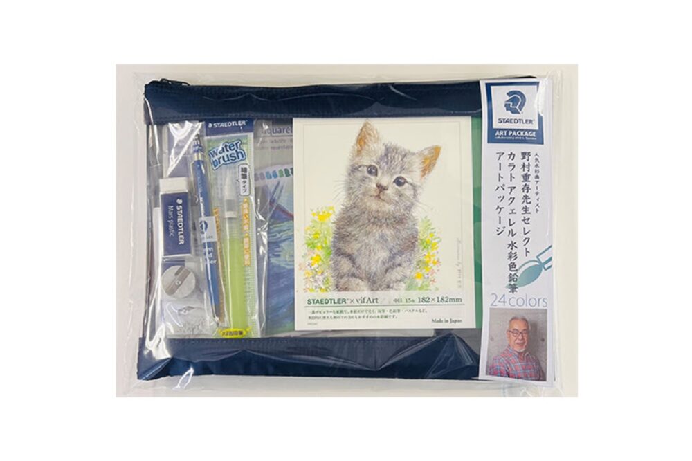 テレビ番組、書籍、全国各地のアート教室でご活躍中のアーティスト“野村重存”先生は、普段から多くのステッドラー製品を愛用。そのご縁から、野村先生がオススメするアイテムをまとめた水彩色鉛筆のアートパッケージが誕生した。