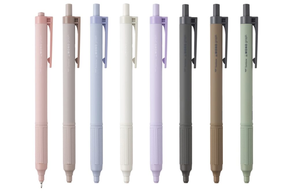 トンボ鉛筆が昨年春に発売したペン先まわりが明るく広く細字が軽やかに書ける「モノグ ラフライトボールペン」に、コーディネートが楽しいスモーキーカラー8色を9月1日(木)に追加発売。