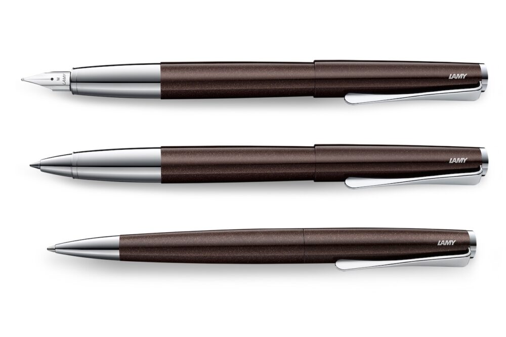 「ラミー ステュディオ ダークブラウン」は手にしっくりと馴染む流線型ボディにユニークなプロペラ型クリップが目印。適度な重量感と太さ、計算し尽くされたフォルムが特徴的。2022年限定色は成熟した雰囲気を演出するダークブラウン。シックな色調にメタリックラッカーの輝きが華を添える。