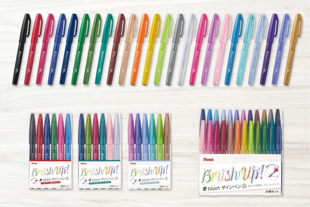 発売当初は、主に年賀用途に使われていたが、現在は、モダンカリグラフィーや気軽なイラスト、バレットジャーナルなど、用途が広がっている。多様な使い方をより楽しんでいただくために、文字やイラストを優しく彩るソフトカラーの新色6色を追加し、全24色展開とした。飾り文字や気軽なイラスト等、カラーペンとして、さらに表現を楽しむことができる。
