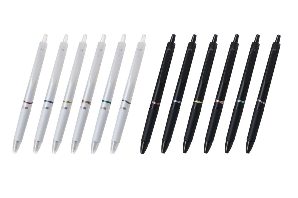 外観ではマット調のボディカラーと、「アクロ」シリーズでは初めてとなる手になじみやすいストレートタイプのラバーグリップにより、シンプルで高級感のあるデザイン。インキは、なめらかな書き味とカスレのない書き出しが特長の低粘度油性インキ「アクロインキ」を採用し、ボール径は細書きができる0.3mm(激細)とよりくっきり書ける0.5mm(極細)をラインアップしている。