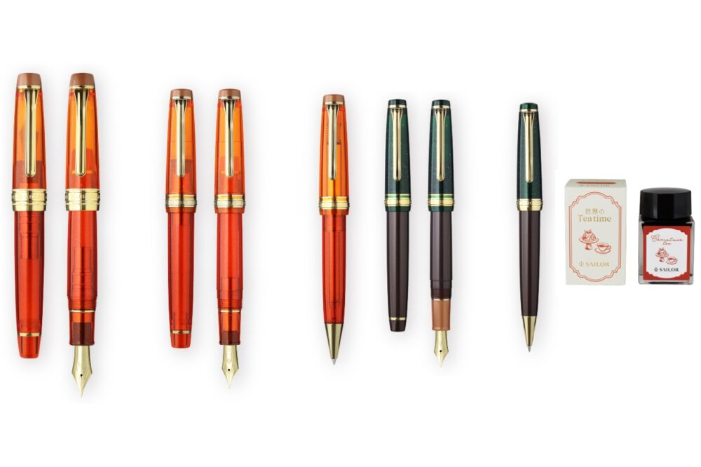 ラインアップは、万年筆3種、ボールペン2種、万年筆用ボトルインク1種の全6種。飲み物だけでなく茶器やお菓子なども含めた文化そのものをモチーフにした筆記具となっている。