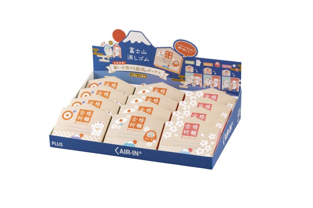 プラスは、“消す”を楽しみながら自分だけの富士山を作ることができる「エアイン 富士山消しゴム」から、合格祈願をテーマに、メッセージを添えて贈れる絵馬型 ボックス入りの限定企画「エアイン 富士山消しゴム(限定)富士絵馬」を発売。受験が登山に例えられることから「登山の日※」に合わせた10月3日(月)から。