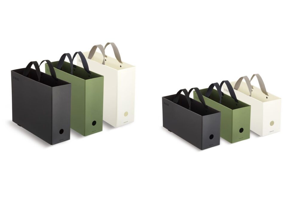 サイズは、13.3インチまでのノートパソコンに対応したA4サイズと、高さが約半分で日用品等の収容にも適したA4ハーフサイズの2種。カラーバリエーションは、オフィスにも家庭にもなじむ、ブラック、オリーブグリーン、オフホワイトの3色となっている。