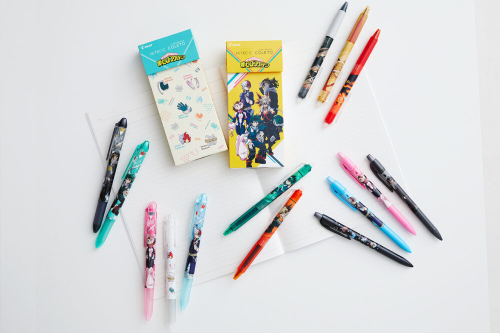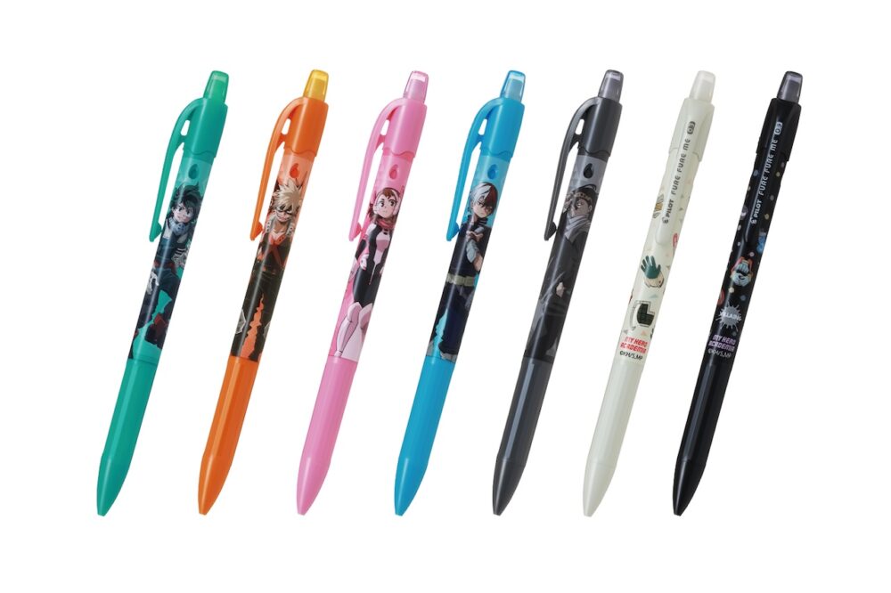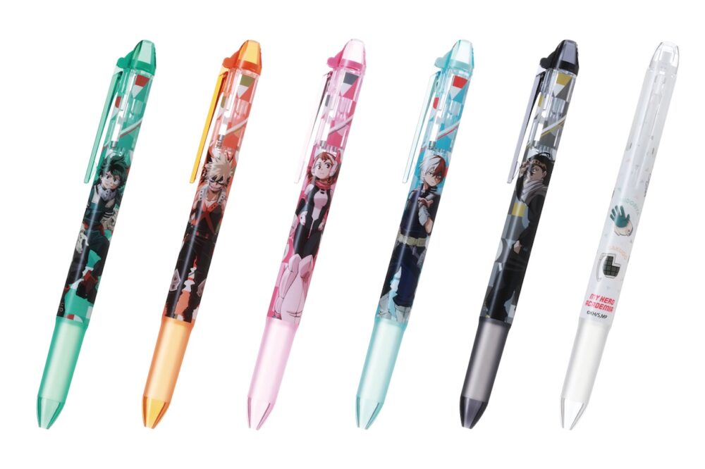 今回3回目を迎える『僕のヒーローアカデミア コラボキャンペーン』では、“ヒロアカ”に登場する人気キャラクターを本キャンペーンのために描き下ろしたオリジナルデザインの多色・多機能ペン『ハイテック C コレト』、シャープペンシル『FURE FURE ME(フレフレミー)』、消せるボールペン『フリクションボールノック』の3アイテムを11月1日(火)より数量限定で発売する。