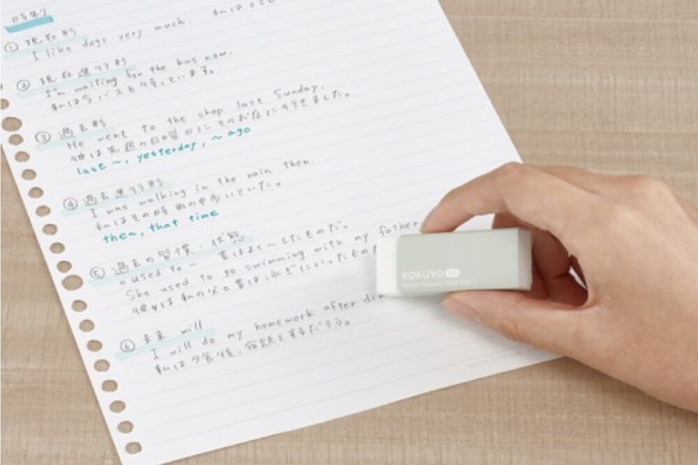 紙の繊維からこだわり、通常の紙よりも表面の凸凹を小さくしたコクヨオリジナル原紙を採用。消しゴムで消す際は、芯の汚れが残りにくいのできれいに消え、筆記の際はひっかかりが少なく、なめらかな書き心地を実感できる。また、軽い力で消しやすいので、消しゴムの摩擦で紙がシワになったり破れたりしにくくなっている。