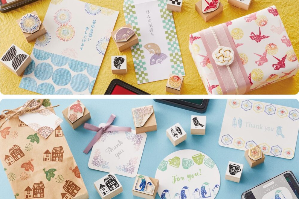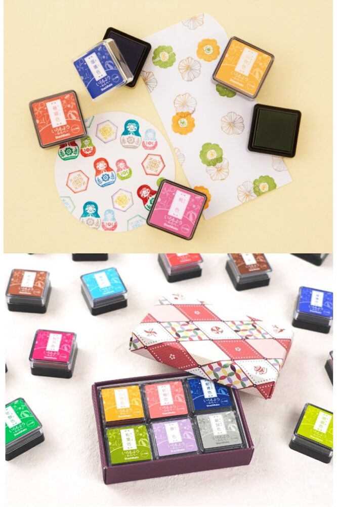 その他、全29色のバリエーションを誇るスタンプアート用スタンプパッド「いろもよう」のミニサイズ版「いろもよう わらべ」の中から、自分の好きな6色を選んでオリジナルボックスに入れる「いろもよう わらべ紙箱セット」を数量限定でご用意。