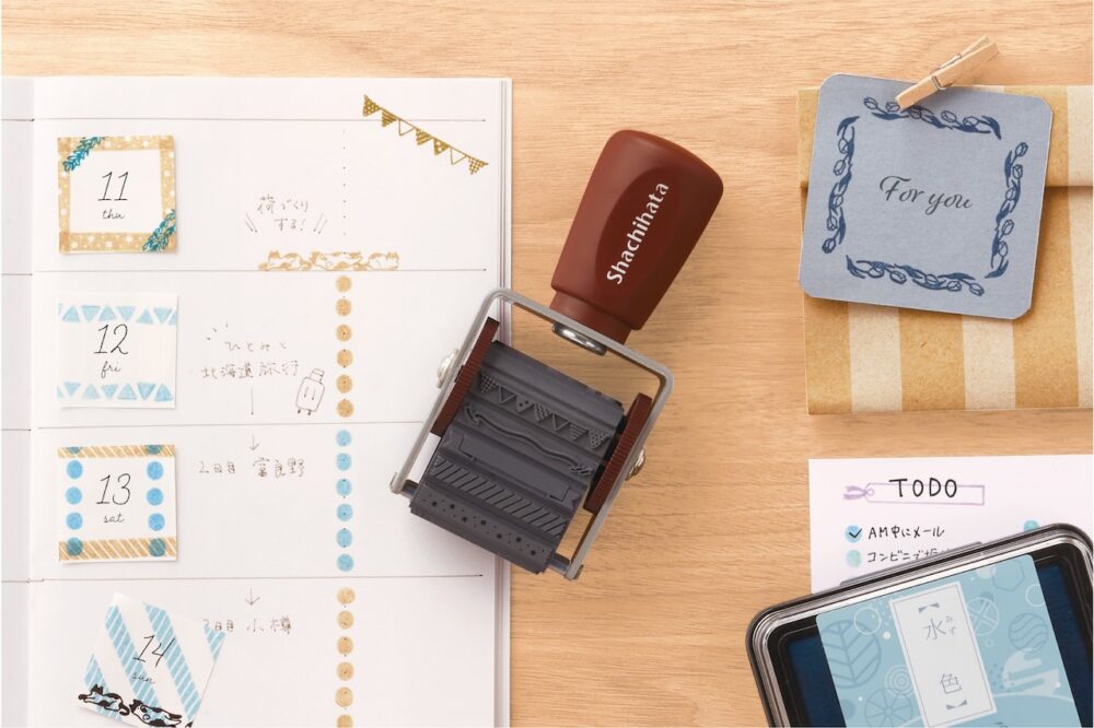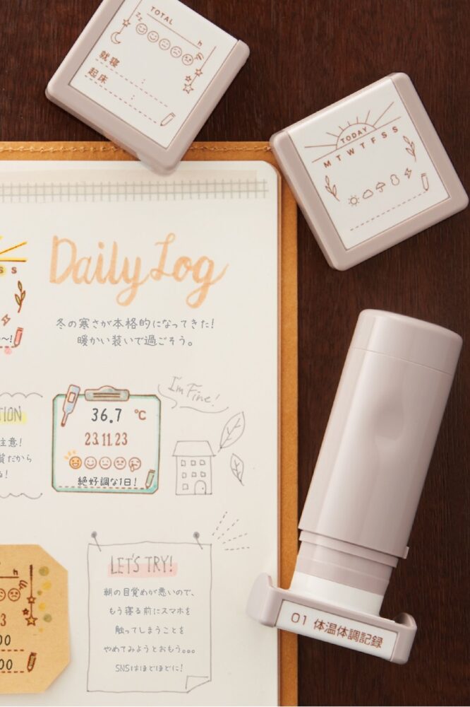 また、今回は12月初旬に発売する「デイリーログスタンプ」を先行発売。スタンプ台を使用して「日付」と「生活や趣味の記録ができるフォーマット」を押すゴム印で、手帳デコにピッタリの新商品だ。