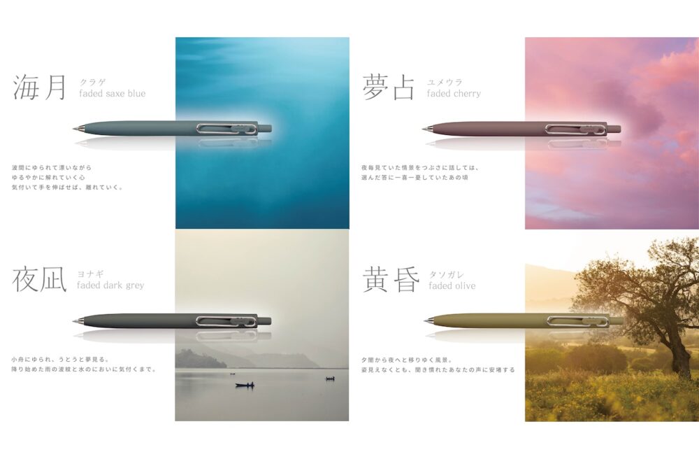 今回新発売する軸色は、従来の『uni-ball one F』よりもダークトーンのスモーキーなカラーを採用している。秋冬らしいシックな色みで、年齢性別問わず幅広い層の方にマッチするデザイン。また軸色名も従来品からさらに抽象度を高くすることで、ユーザーの想像の幅が広がるよう、デザインと併せてこだわっている。