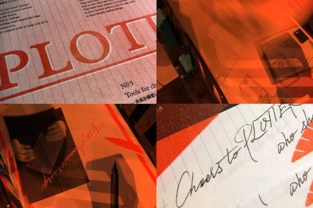 今回のイベントでは、「プロッター」ファンへ感謝の気持ちを込めて、また、新たな出会いを期待して、盛りだくさんの内容を用意。イベントならではのリミテッドエディションアイテムの販売、人気の「レザーバインダー」フルカスタマイズに加え、KUNISAWA BREWING協力のもと、 PLOTTER初のオリジナルビールをはじめ、至高の靴修理職人によるレザーバインダーのアンティークカスタマイズ加工、手動活版印刷体験など、ここだけでしか味わえない、「プロッター」のオリジナリティあふれる世界が楽しめる。