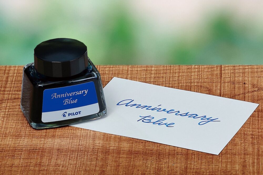 清々しさを感じさせる鮮やかな青色が特長の限定色インキ「Anniversary Blue」が付属し、カスタムシリーズの歴史と、品質へのこだわりを紹介したブックレットとともに専用箱に収められている。