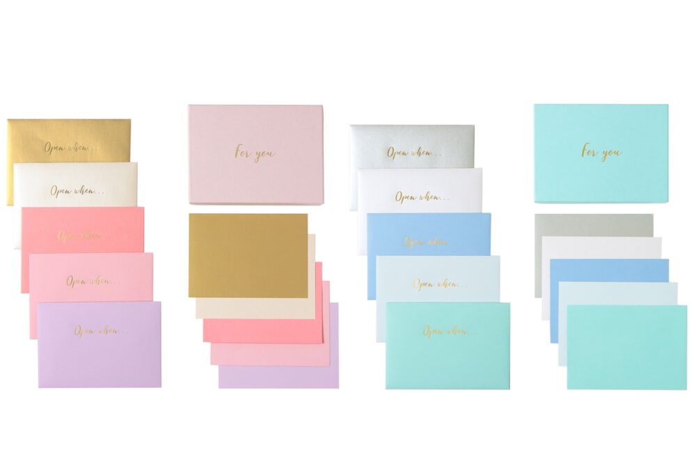 「Open when letters (オープンウェンレターズ )」は、贈った相手が「○○の時」に開くレター。これから人生で迎える様々なシチュエーションを考えて、その時に読んでもらいたいメッセージを書く新しいレターの形だ。