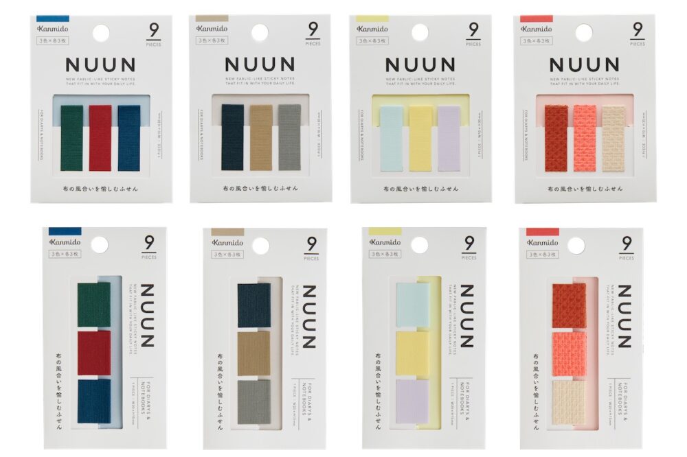 カンミ堂は、従来の紙やフィルムとは異なるz2風合い“や”質感“を楽しむことができる「布」素材の新しふせん「NUUN」を12月2日(金)に発売する。