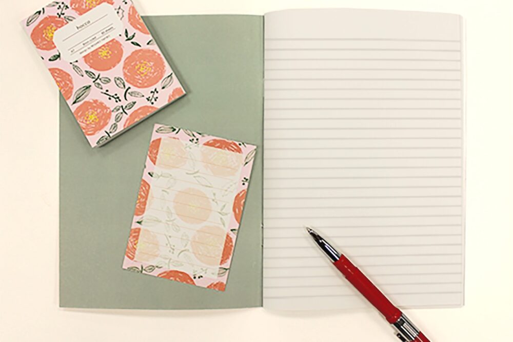 仕事やプライベートでも幅広く活用できるノートは、セミB5・A5・A6の全3サイズと、きれいに剥がせるパッド式のA7メモ、計4サイズ。『hocco』オリジナルカラーの丸花を含む4柄展開の全16アイテム。シリーズで揃えてホッコリと書く時間を楽しもう。