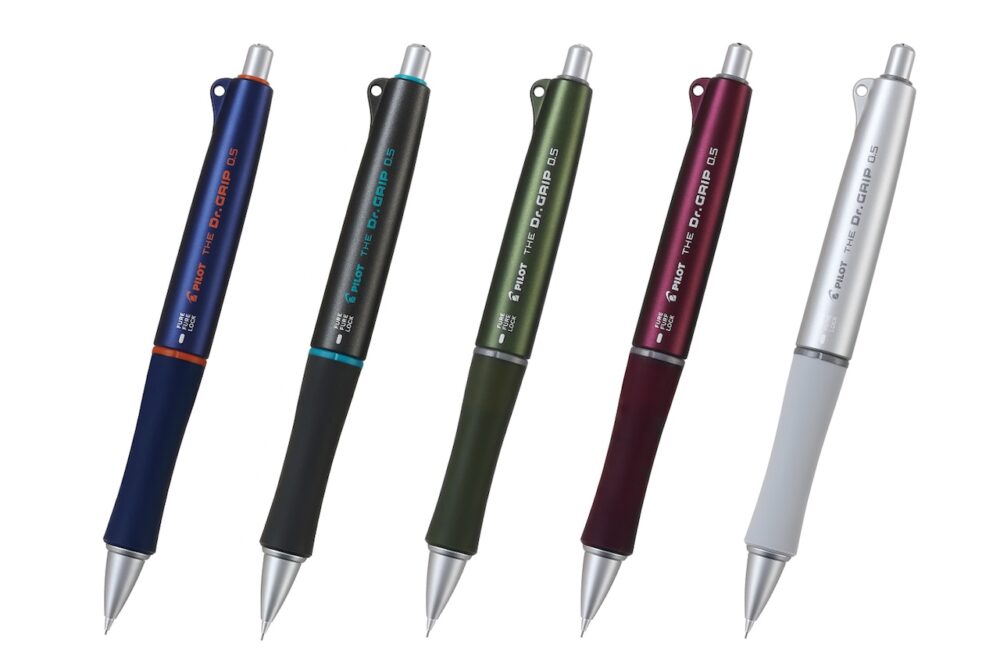 「ドクターグリップ」は、人間工学に基づき、握りやすさを追求した太い軸径と弾力性のあるラバーグリップが特長の疲れにくい筆記具シリーズ。シャープペンシルには、ペンを振るだけで簡単に芯を送り出すことができるパイロット独自のフレフレ機構を搭載している。