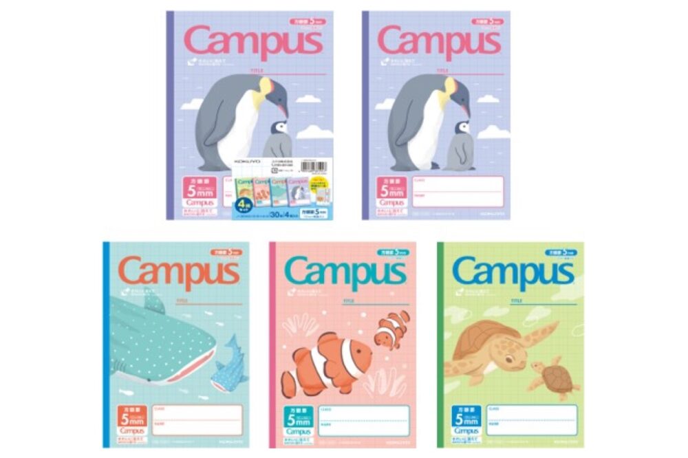 コクヨは、きれいに消えてなめらかに書けるオリジナル紙を中紙に採用した小学生向け「キャンパスノート(用途別)アニマル柄」から、第2弾となる“うみのいきもの“を表紙にあしらった4冊パックを12月17日(土)より発売。