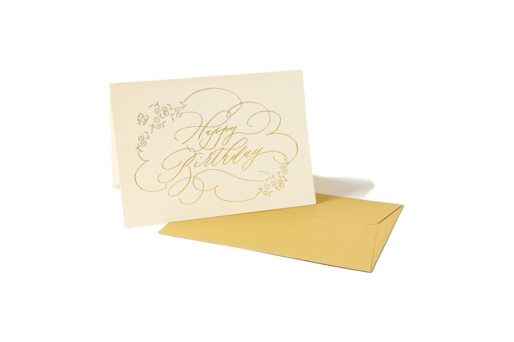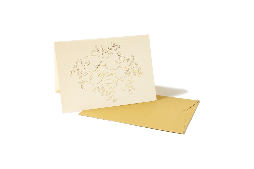 クレールフォンテーヌのレターコレクション「ポレン」に、シックなグリーティングカードが登場。パールアイボリーとパステルカラーのカードに流麗なモダンカリグラフィーに繊細なイラストがあしらわれたデザインが箔押しされている。光沢が美しく高級感のあるパール紙の封筒をセットに。お礼やお祝いのメッセージを華やかに演出する。