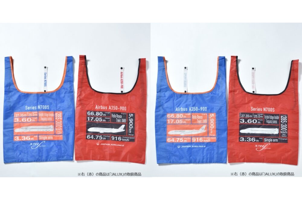 今回のコラボレーショングッズは、東海道新幹線N700Sの車両とAIRBUS A350-900の機体をスタイリッシュに描いた、ダブルリングノート、Pake(R)セット(ジッパーバッグ)、エコバッグ、巾着セット、そしてアクリルキーホルダーの全5アイテム。各2色展開とし、ジェイアール東海パッセンジャーズでの販売は青色、JALUXでの販売は赤色と、2社それぞれで色や一部のデザインが異なる商品を販売する。