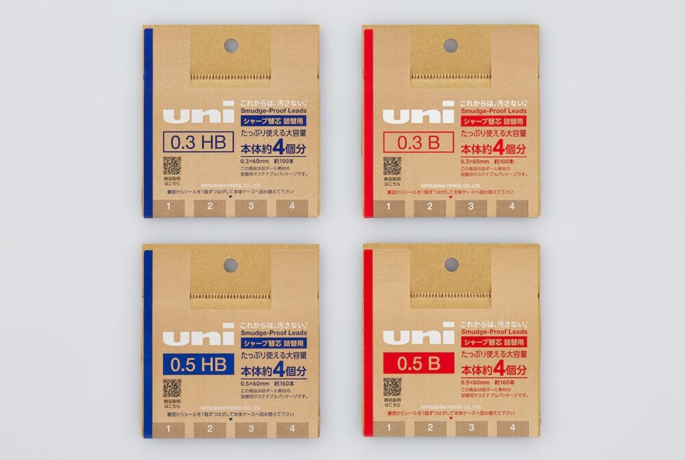 三菱鉛筆は、書いた後のノートをキレイに保つシャー プ替芯『uni(ユニ)』から、段ボール素材のパッケージを採用し、本体ケースへ詰め替えて使用する『uni(ユニ) 詰替用』を2月22日(水)に新発売。