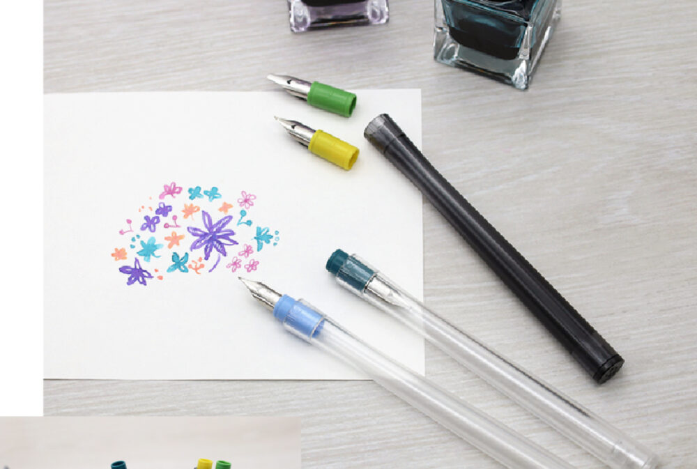 「万年筆ペン先のつけペン hocoro」は、ペン先を軽く水で流すだけで簡単に色替えができるので、インク交換の手間がなく、たくさんの色のインクを気軽に楽しめる。万年筆用ボトルインクを、より簡単手軽に利用できる万年筆ペン先のつけペンとしてこれまでに4種類のペン先〈細字・1.0mm 幅・ 2.0mm 幅・筆文字〉と、細字と1.0mm 幅ペン先のカスタムパーツとして、インクを保持するリザーバーパーツ単体を発売した。