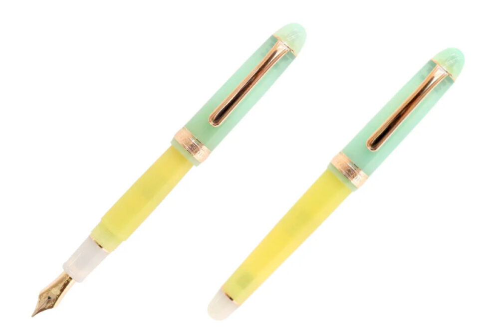 プラチナ万年筆の『#3776 センチュリー』がベース。紅茶の優しい色味とフルーツのような甘い香りをイメージしたデザイン。春らしいカラーリングはカモミールの花ともリンクしている。ペン先は馴染みの良いピンクゴールドメッキ仕様。