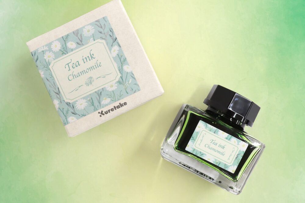 万年筆と同じく紅茶をイメージしたインクが合わせて登場。カモミールティーのすっきりとした味わいを爽やかなライトグリーンで表現している。