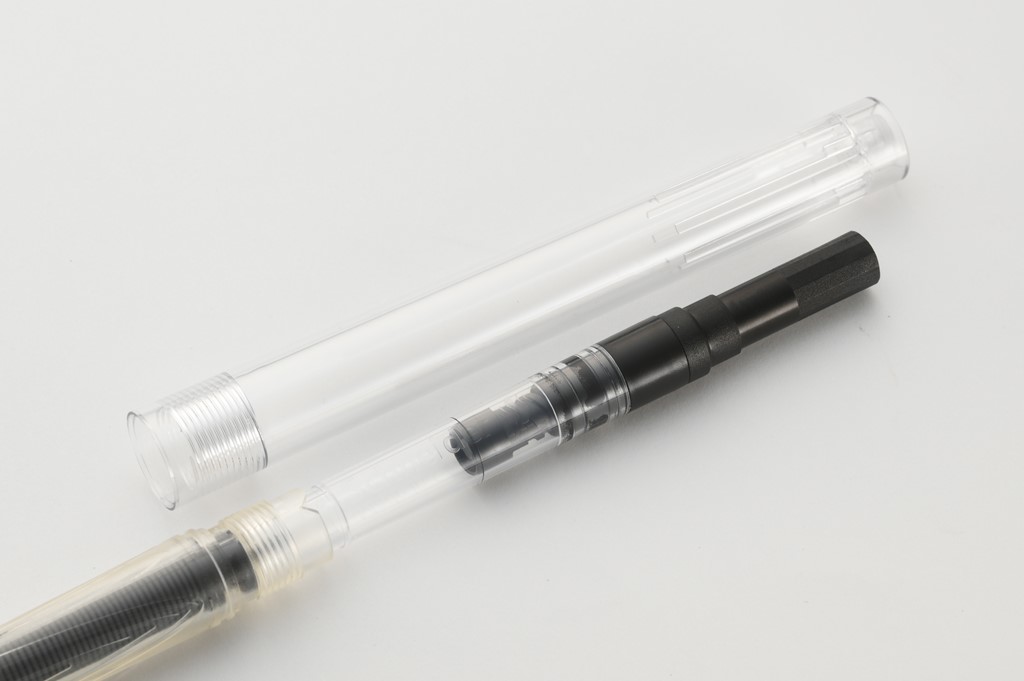 インクの透け感が楽しめるスケルトンモデルも展開。スリムでスタイリッシュな印象。スチールペン先はEF を採用している。インクカートリッジの他、コンバーターが付属しているのもうれしい。