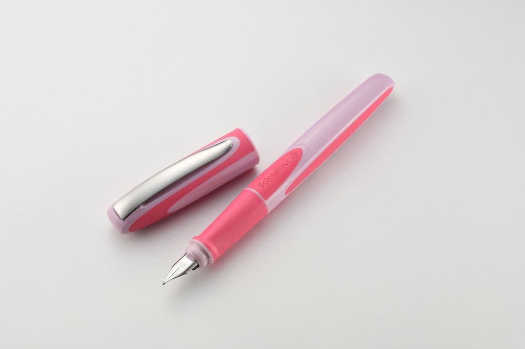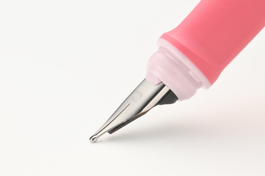 「品質」「デザイン」「使いやすさ」でドイツでも高い評価を得ているモデル。カラーによって左利き用のペン先もある。写真の「コーラル」の左利き用は、市場在庫のみ。軟らかくしなるスチールペン先も魅力的だ。