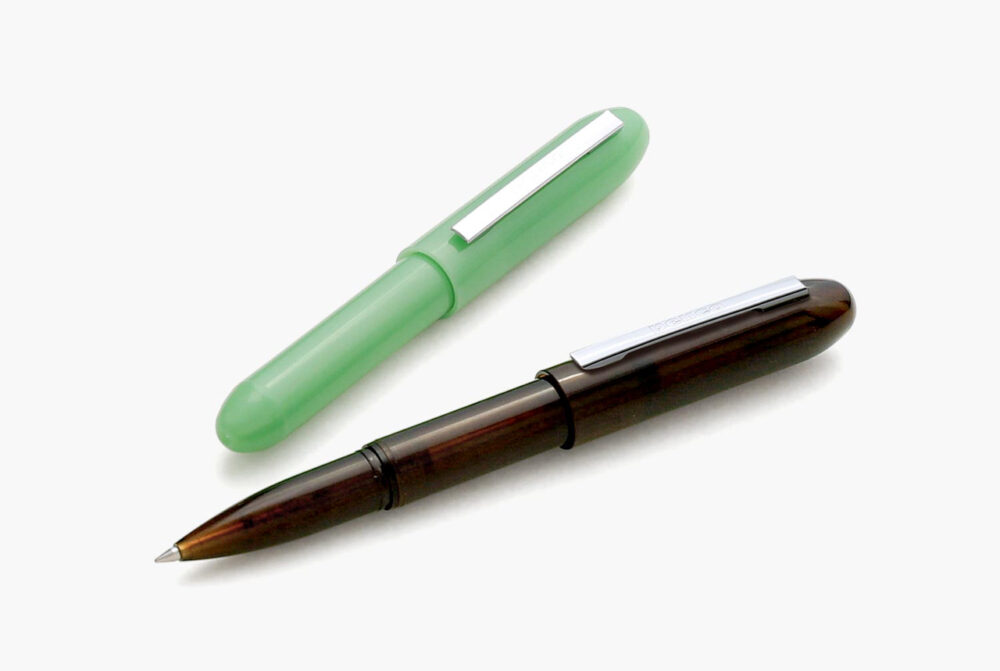 コンパクトなサイズ感と軽量さ、豊富なカラーバリエーションが人気の「penco」の筆記具「バレットボールペン ライト」。耐熱ガラスのようなクリアな琥珀色「クリアブラウン」が、この度新たに加わった。