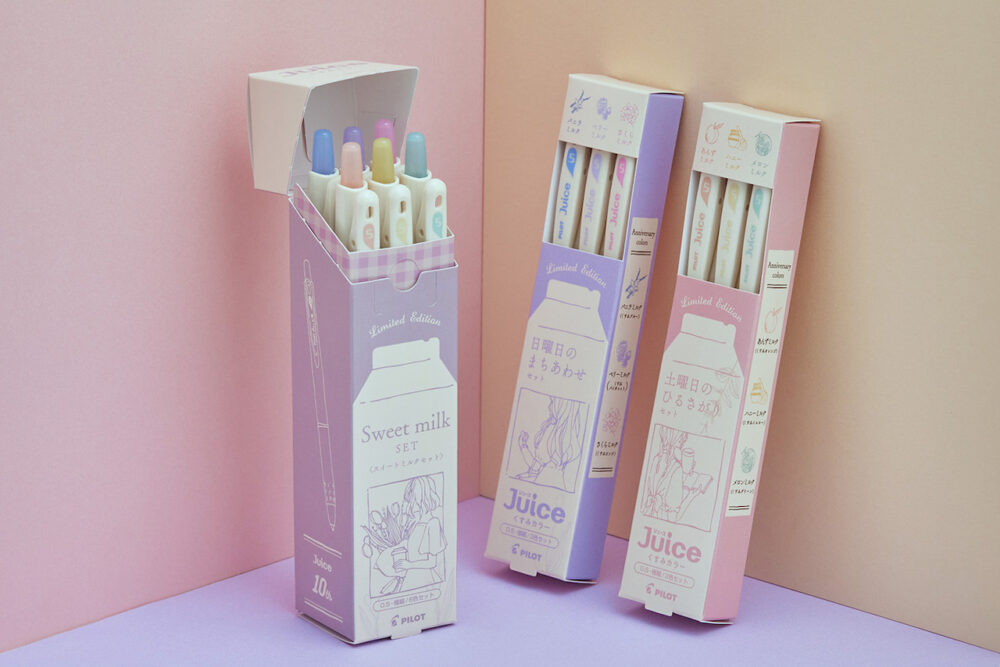 昨年12月に発売した第1弾の「ジュース クラシックカラー」に続き、第2弾は「スイートミルク」をテーマに、休日のゆったりした時間に使いたくなる、淡く優しい色合いの「くすみカラー」のインキ色を揃えた。