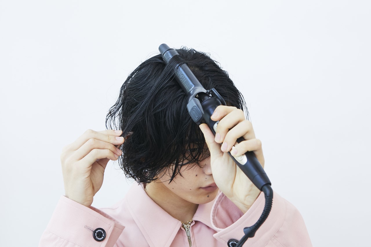 クセが出にくい根元はアイロンを当てて立ち上げる。クセは人によって異なるので、足りないところを巻こう。