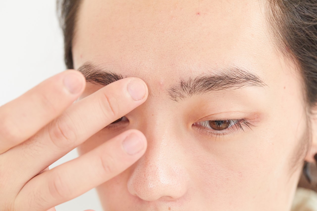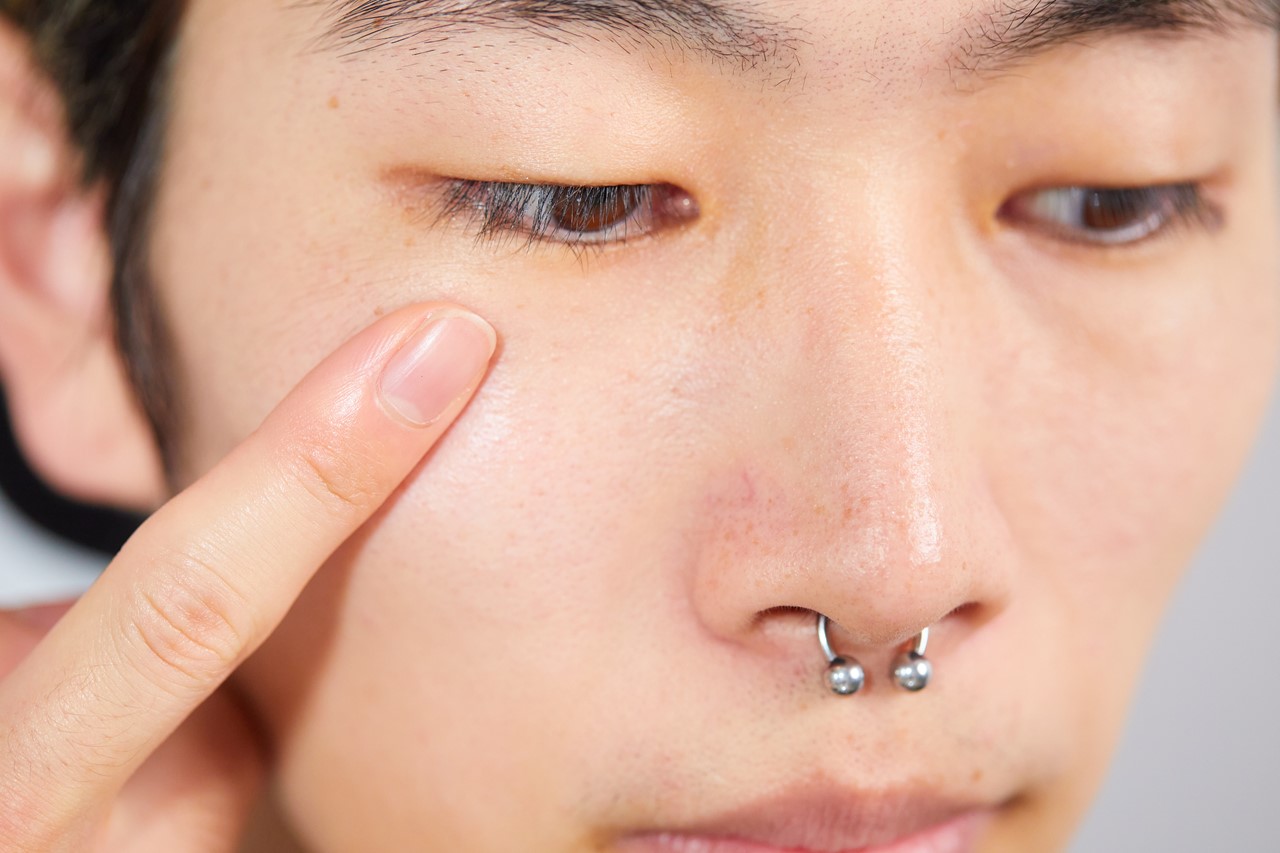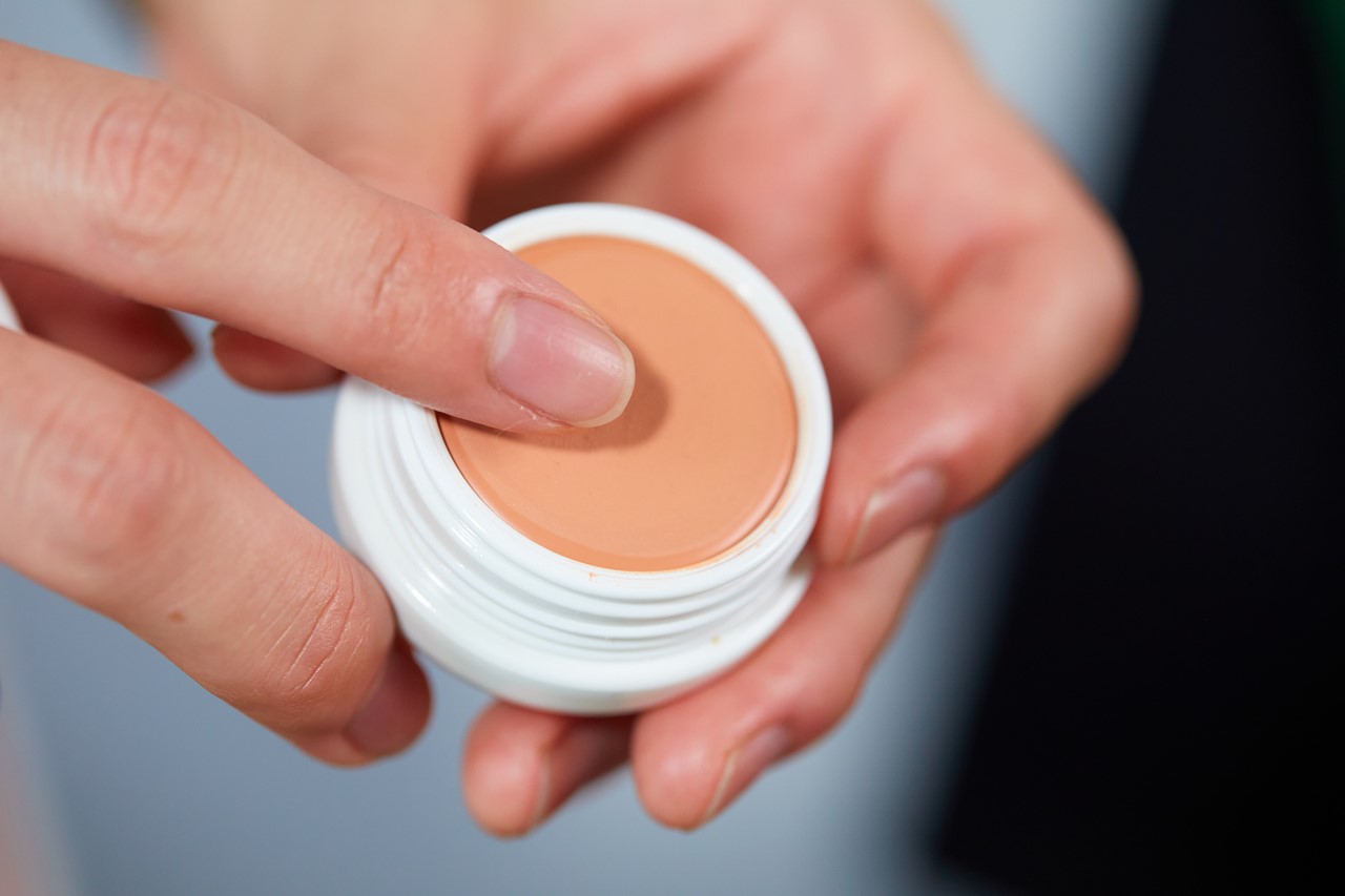 指の腹でたたくようになじませる。ゴシゴシこすったり、指でのばすとコンシーラーの色味が消え、赤みを消すことができなくなる。