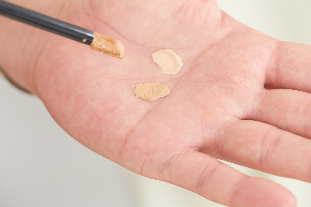 肌にコンプレックスがあるからといって、ファンデーションで厚塗りすると“メイクした感”が出てしまいます。また、肌を白く見せたいからと自分の肌色より明るいファンデーションを選ぶと白浮きするので、自分の肌色になじむ色を見つけるのがポイントです。