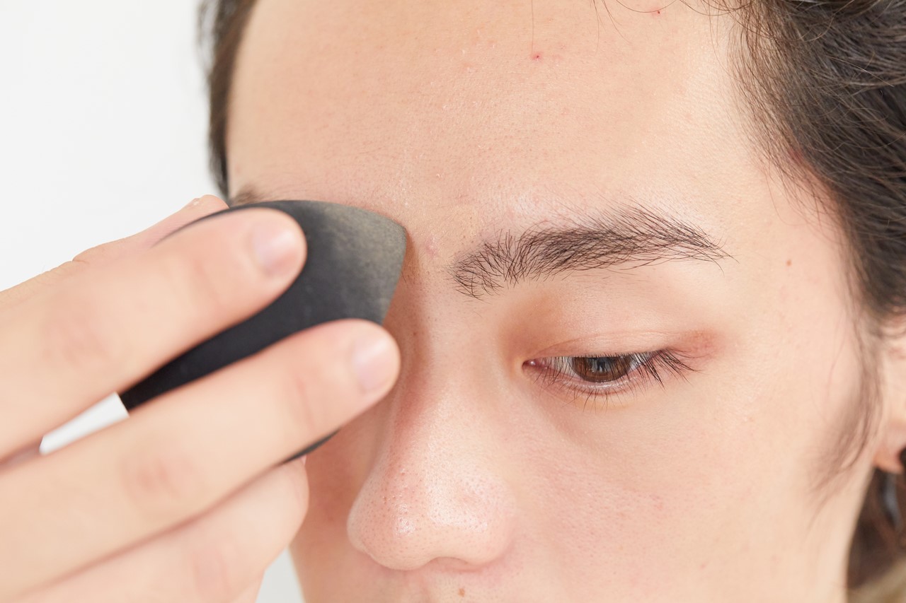 こするとコンシーラーのカバー力が弱まるので、こすらないようにスポンジでたたき、肌になじませると自然できれいな仕上がりに。