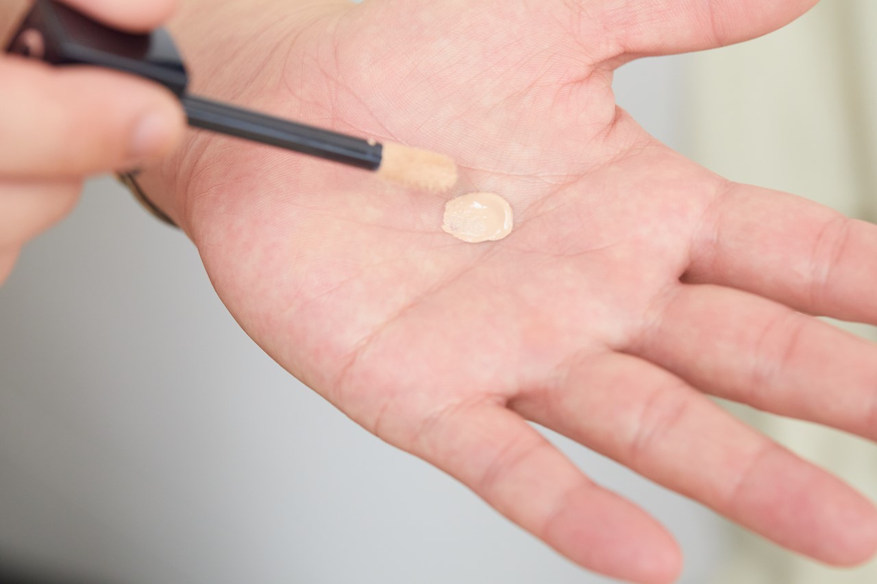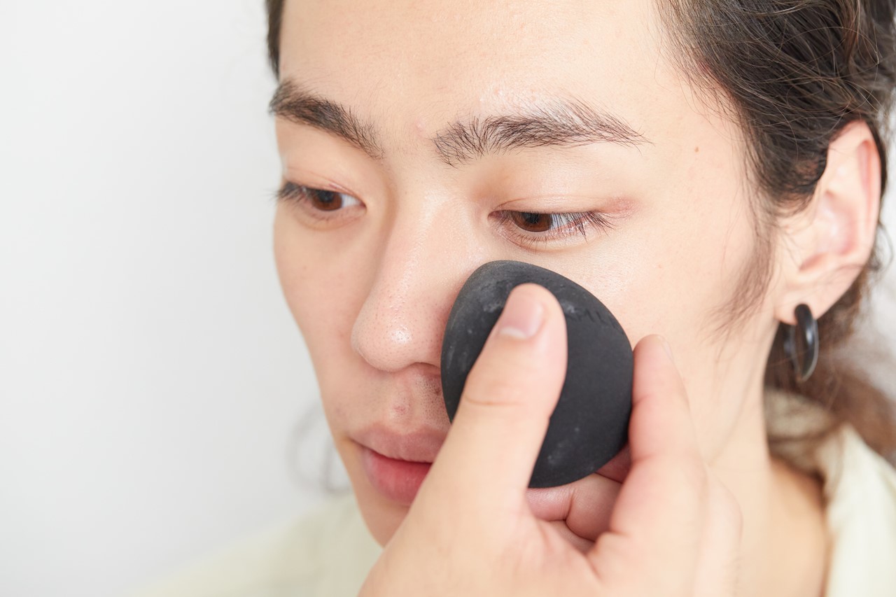指先に軽く取り出したら、気になる部分にサッとひと塗り。鼻の頭に塗った場合は、ハイライト効果で鼻筋がシュッと見える効果も。