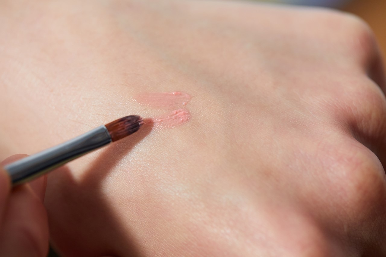 口紅は色選びがポイント。肌なじみのいい色がわからないときは、手の甲に色をのせてみて。手の甲で色が浮き上がって見えないならOK。