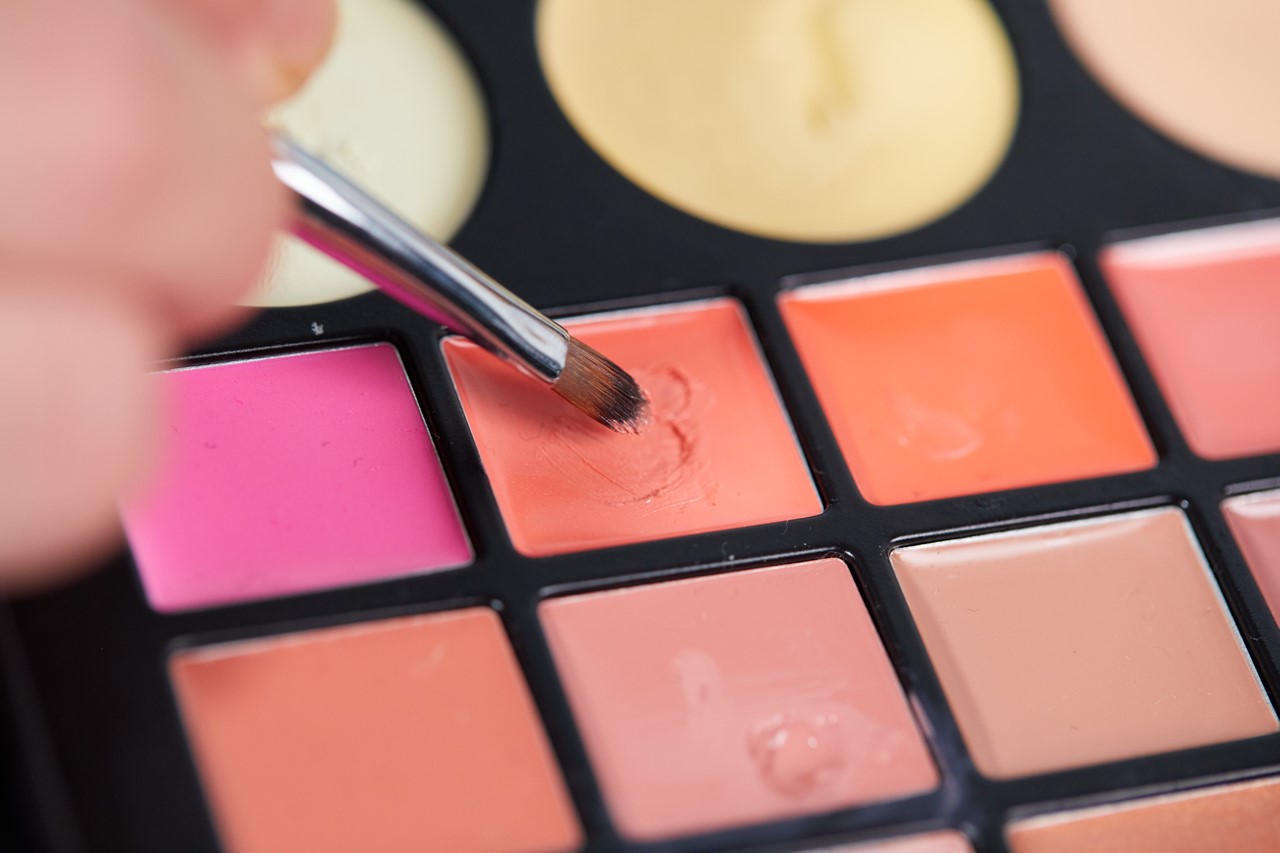 自分の肌色に合わせて色を選ぶ。赤みが強いと女性っぽくなるので注意。ここでは肌なじみのいいコーラルピンクを。紅筆に口紅を取る。