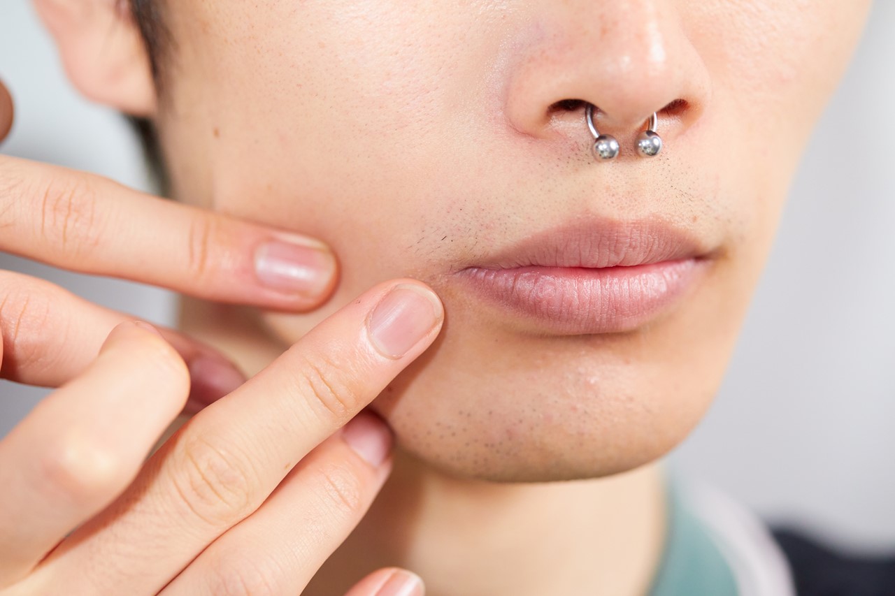 口のまわり、特に口角がくすんでいると清潔感が損なわれてしまうので、肌の色より少し明るめのコンシーラーで消して。