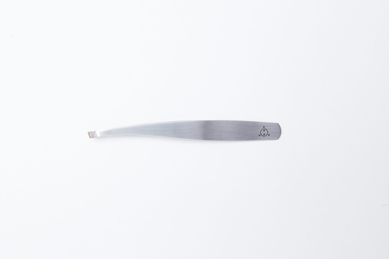 眉毛専用の毛抜き。一般的な毛抜きだと必要以上に皮膚を引っ張ってしまい、たるみにつながりやすいので、専用アイテムは必携。