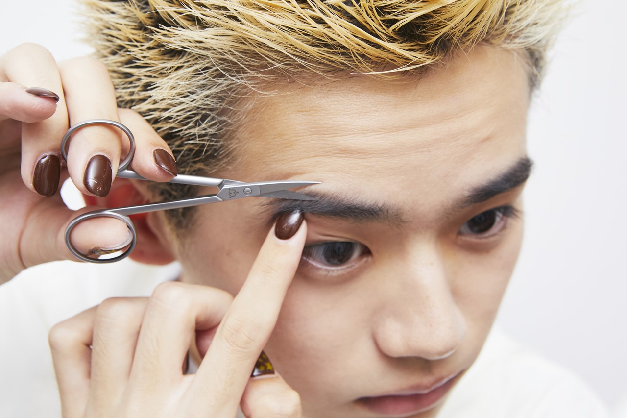 眉カットは眉頭の毛を適度に残すのが重要なポイントです。また、切りすぎ、描きすぎにも注意が必要。綿棒でぼかすと肌なじみがよくなります。眉メイクのポイントは、まず色選びにあります。髪色よりワントーン暗い色を選びましょう。地毛が明るい人は黒ではなくグレーのペンシルを選ぶとよいと思います。瞳の色に合わせるのもおすすめです。
