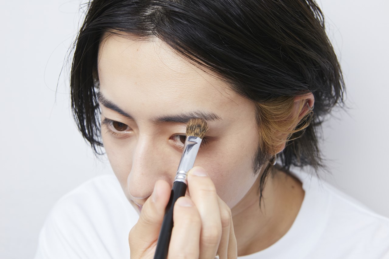 「皮脂がついていると眉を描きづらいのでパウダーでベースを整えてから描いていきます。濃さのムラを整えつつ、均一な濃さにまではしないのがポイント。濃いめでありながら抜け感のある眉に仕上げることが大切です」