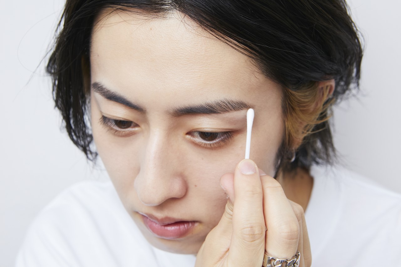 5.描き足した部分に軽くポンポンと綿棒を当てて、色と輪郭を少しぼかし、肌なじみをよくする。