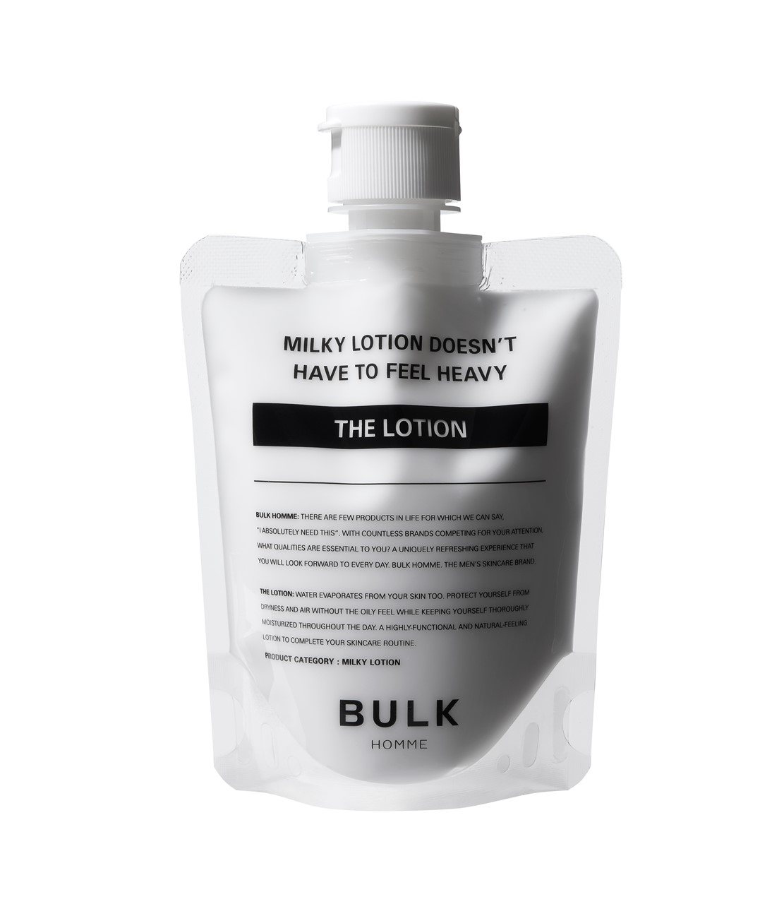 使用感のベタつきや重さを極力抑え、サラッとした仕上がりに。スクワランオイルが硬くゴワつきがちな男性肌を柔軟化し、潤いを保つ。THE LOTION<100g>3,300円/バルクオム