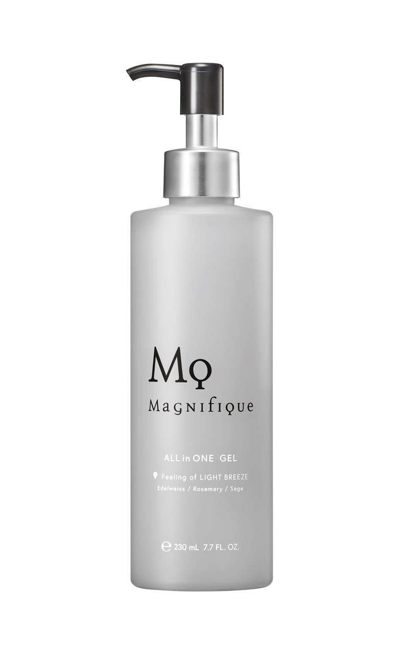化粧水、乳液、美容液の効果が得られるオールインワンタイプ。洗顔やヒゲそり 後の水分バランスを整える。マニフィーク モイスチュアライジングジェル<230mL>2,750円/コーセー