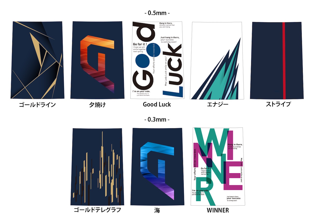 ボディデザイン:0.5mm/ゴールドライン、夕焼け、Good Luck、エナジー、ストライプ、0.3mm/ゴールドテレグラフ、海、WINNER