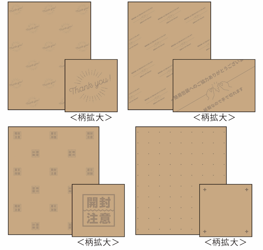ネコポス等の各種配送に対応したサイズにカットしているため、宅配サイズにあった資材を探す手間を減らすことができる。そして紙製のため、はさみやカッターを使用せず手で破ることができ開封が簡単だ。お礼やエコの姿勢など気持ちを伝えるメッセージがプリントされているため、ギフトの梱包にもピッタリ。