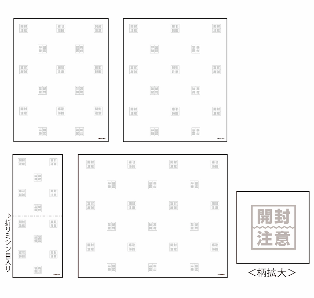 種類/サイズ/価格(税込):開封注意/ネコポス対応(228×297mm)/1,375円、開封注意/クリップポスト対応(250×297mm)/1,375円、開封注意/カード・小物用(120×297mm)/946円、開封注意/A4クリアホルダー対応(360×297mm)/1,870円