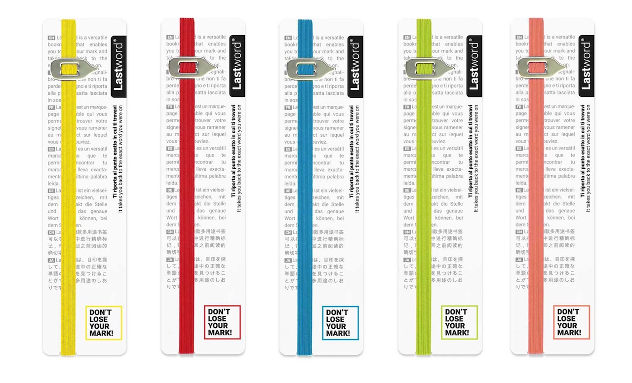 ブランド第一弾となるこの「LAST WORD」は、発売後まもなく権威あるデザイン賞を受賞、そしてついに日本でも順次発売を開始する。ユニークで可愛らしいアイデア商品はバンドタイプの栞で現在5色展開となっている。
