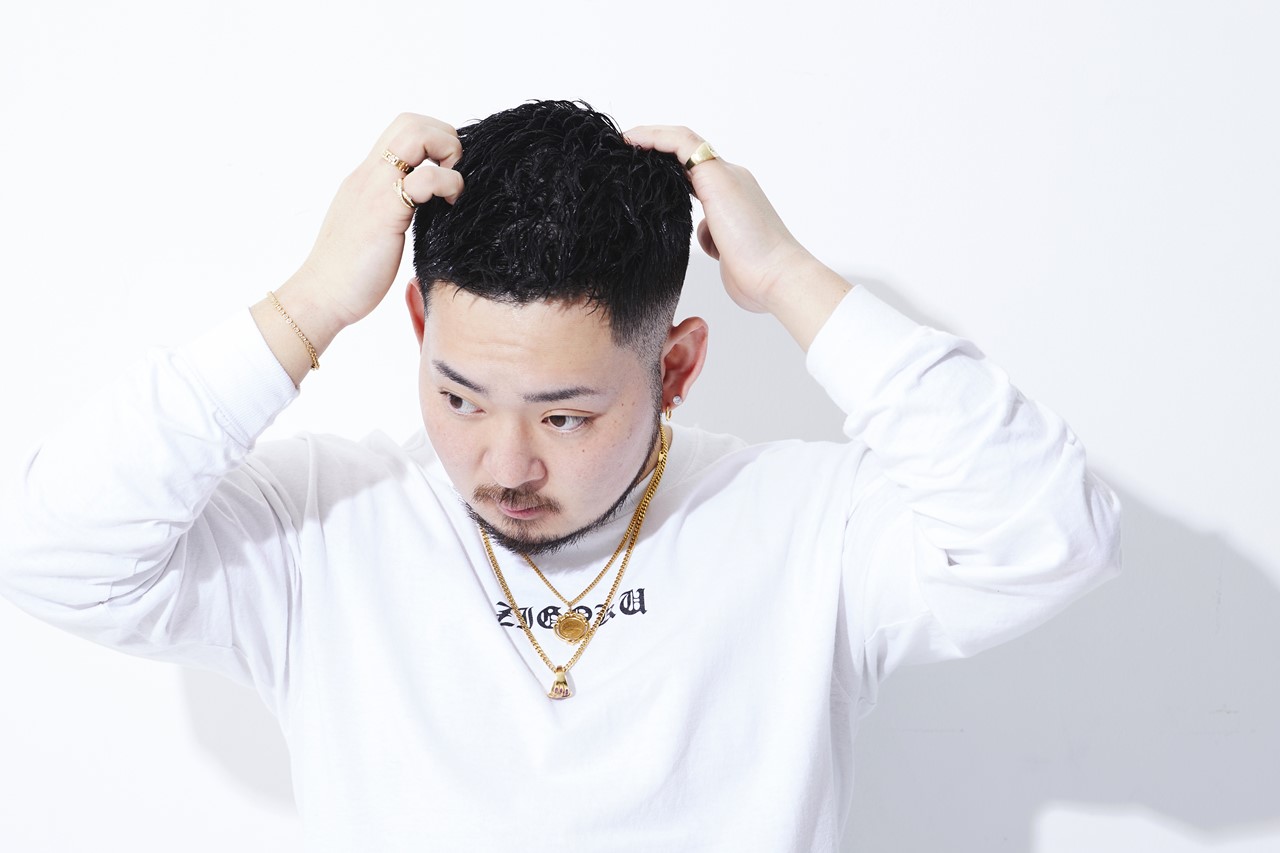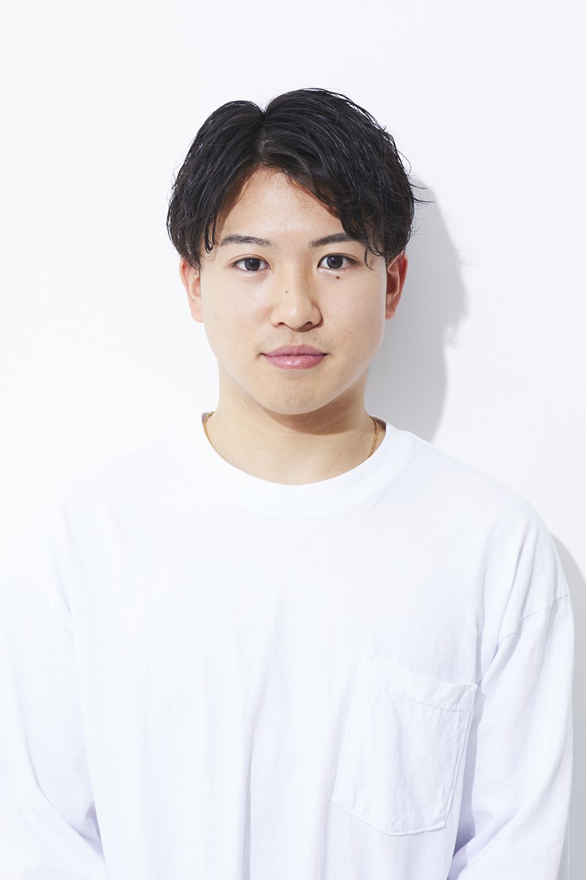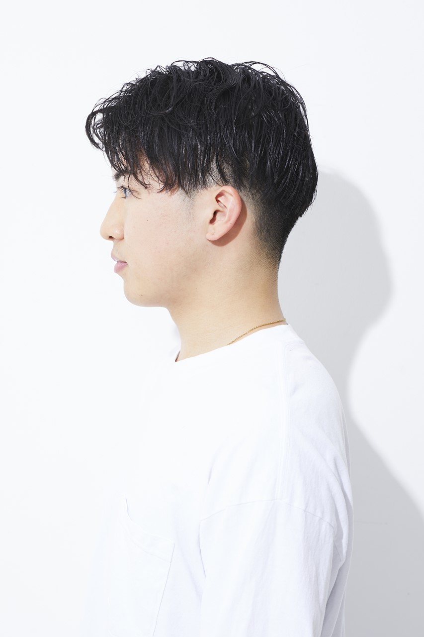 カット/サイドは耳上で残し、2ブロックは1.5~4.5mmでカット。バックは刈上げで0~8mmのグラデーションに。トップは耳上の長さまで残し、前髪は眉下に設定。パーマ/10~15mmのロッドをランダムに、中間~毛先にツイストスパイラルパーマをかける。